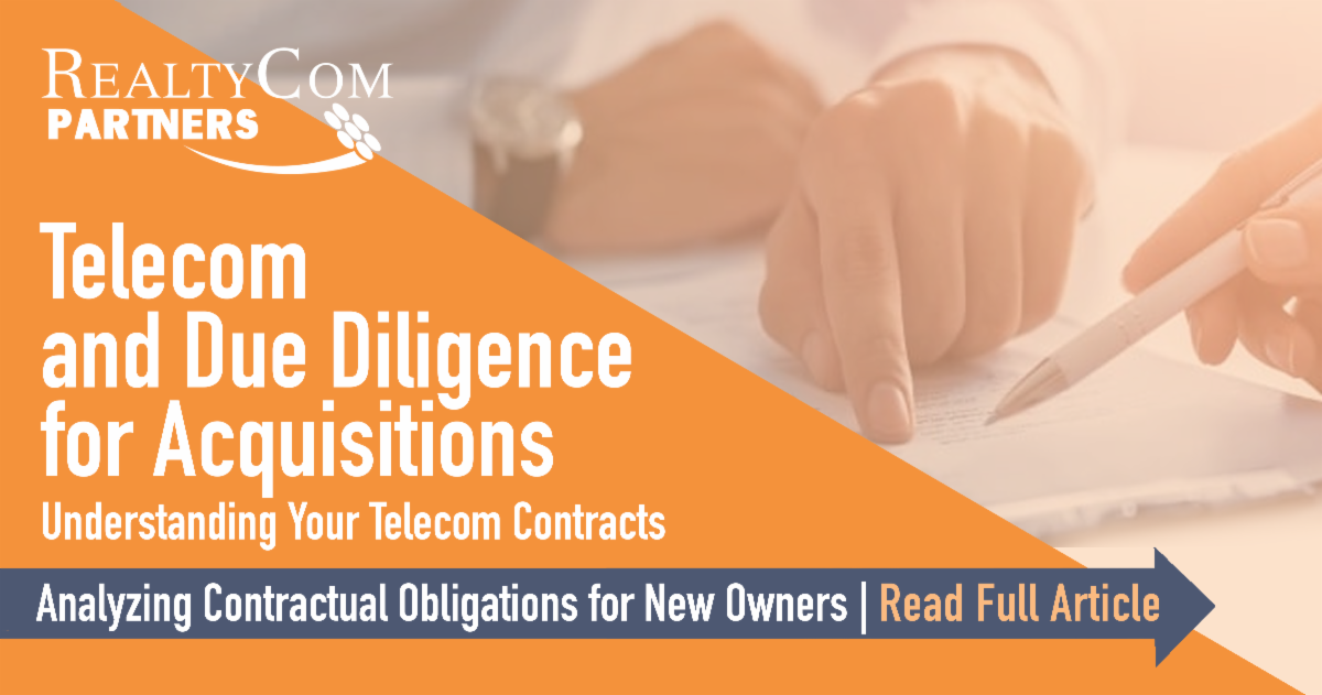 At RealtyCom Partners, our experienced team conducts thorough telecom due diligence, reviewing contracts, coordinating with providers, and cataloging key terms, to give property owners confidence in their acquisition decisions.