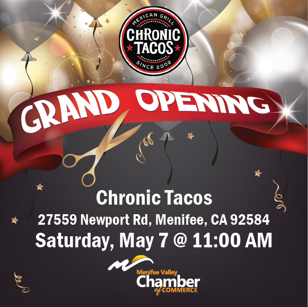 Join us as we celebrate the Grand Opening of Chronic Tacos with a ribbon-cutting ceremony! There will be raffles, giveaways, discounts, and the first 50 guests will receive a free taco! Calendar page