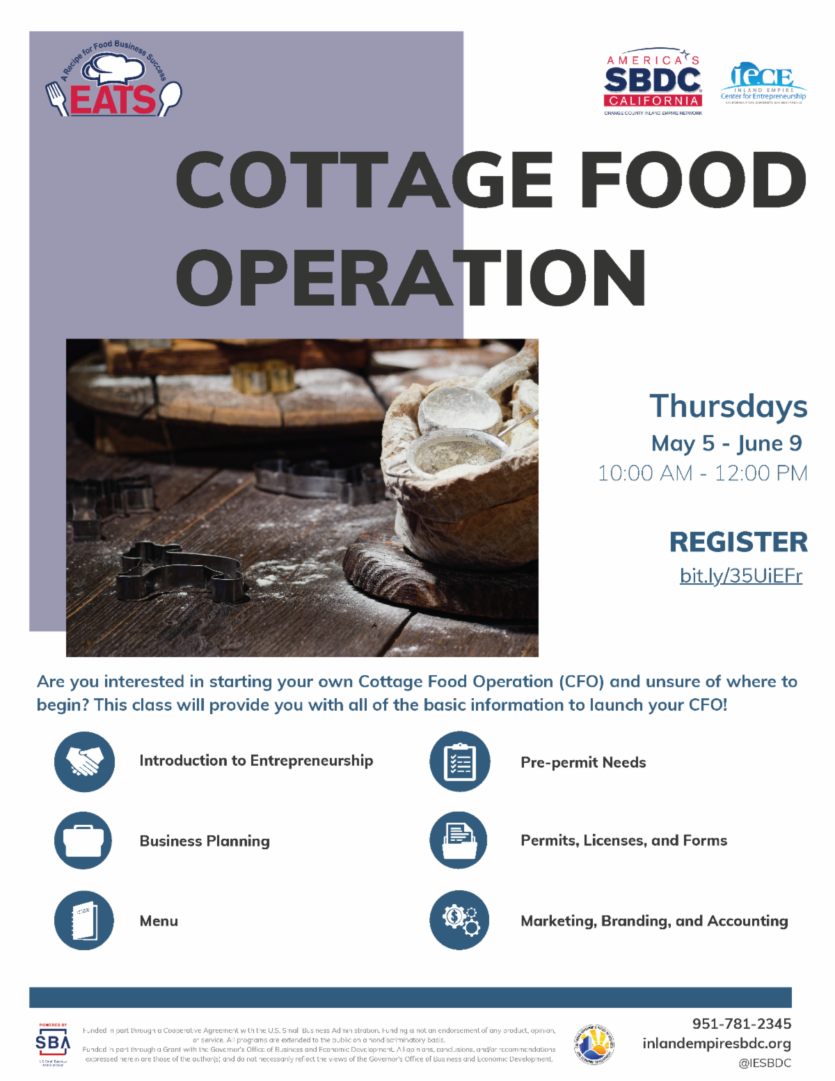 Thursdays May 5 - June 9: Cottage Food Operation + Microenterprise Home Kitchen Operation Webinar Series