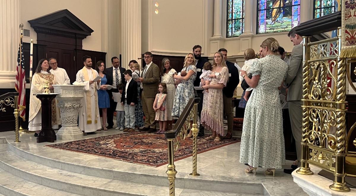 Baptism Sundays are always special at St. James’s. And this past Sunday was no exception. There were five baptisms and we were lucky enough to get a picture of all the little ones being baptized with their families and friends. Below are all the names of the baptized children, along with their parents, grandparents and godparents. Congratulations to all!