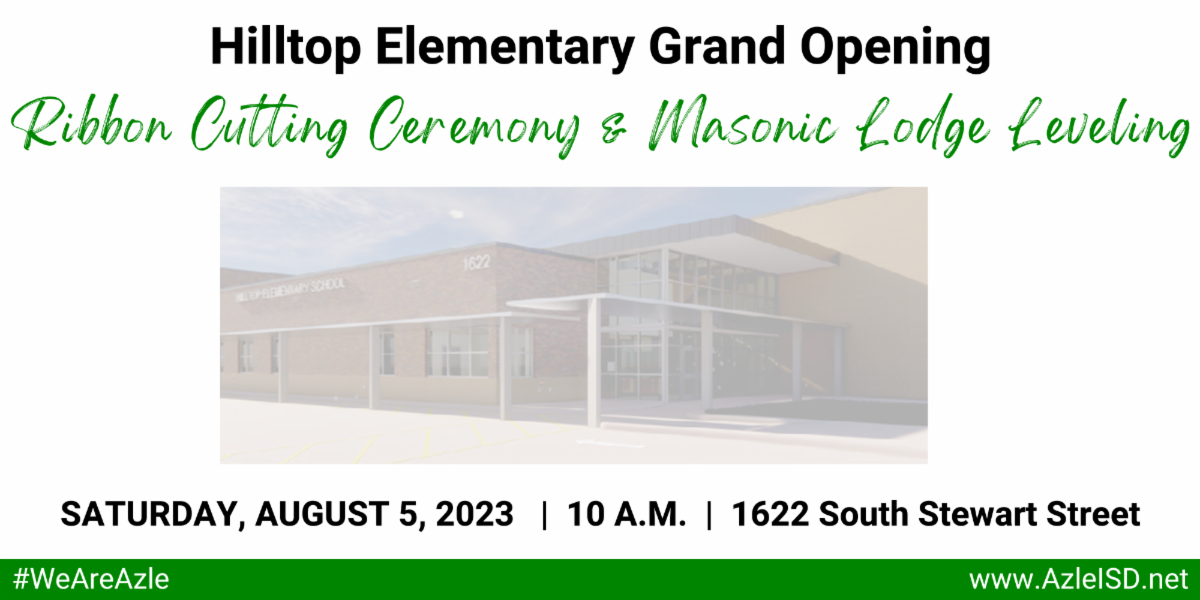 The Azle ISD community is invited to a Grand Opening Celebration at Hilltop Elementary on Saturday, August 5, at 10 a.m.