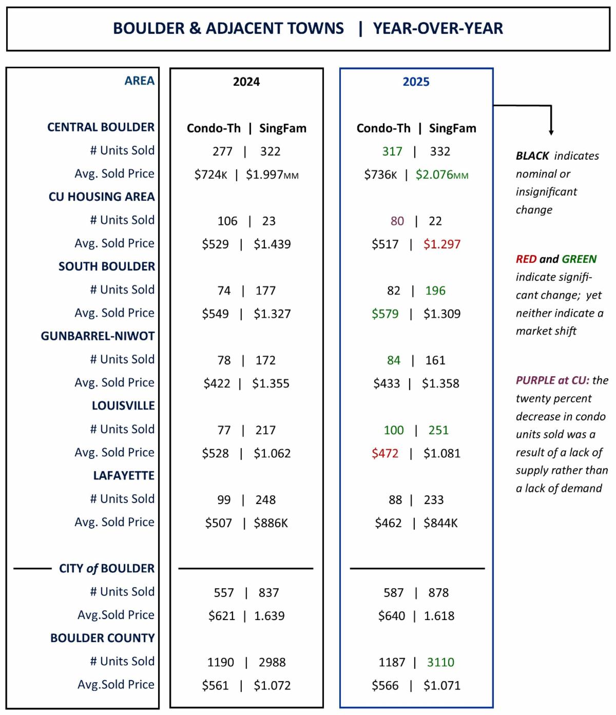 One year ago, in the weeks following Trump’s inauguration, we heard much about the economic uncertainty that may result from his 'management style', shall we say. That sentiment has not dissipated because it is still being referenced today. Yet that mindset was expected to affect economic growth across sectors of industry. Since the real estate sector floats on the same tides as our general economic conditions, many consumers and pundits expected that the real estate market would be adversely affected. Throughout 2025, I was sniffing for trouble, looking for the cracks in the hull…but nothing. And ironically, the country's GDP has grown year over year. So in a year when the forecast was perpetually gloomy; when many prospective buyers did not act because of fear of imminent decline, Boulder’s real estate market activity and property values remained even with the previous year. And that is a victory. Many markets around the country have indeed softened but in general, the national real estate conditions are not in seismic market shift.