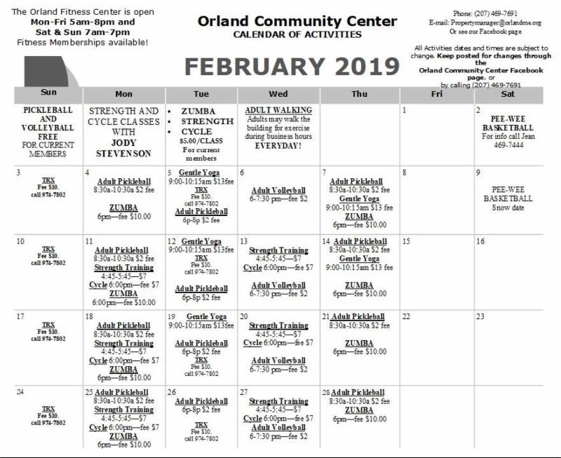 Orland Community Center February Calendar