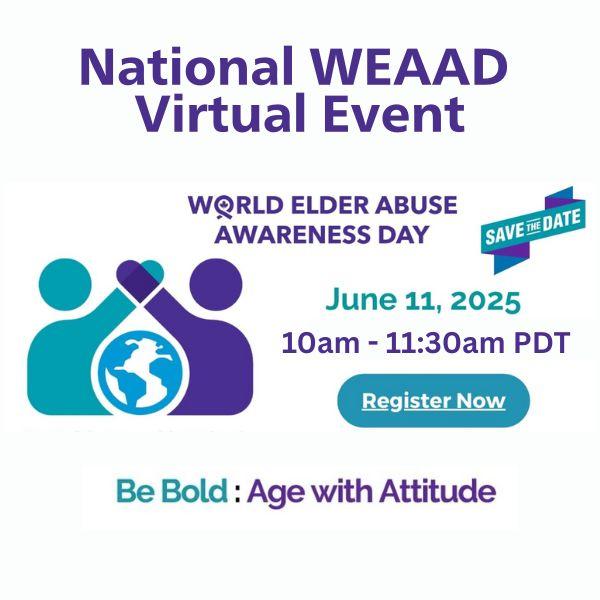 Join us for the National WEAAD webinar as we come together to take action against elder abuse. This interactive session will feature a panel of experts and advocates sharing powerful insights on how we can protect the rights of older adults across Canada. Whether you're an individual, organization, or government representative, you play a crucial role in creating a society where older adults are valued and supported.