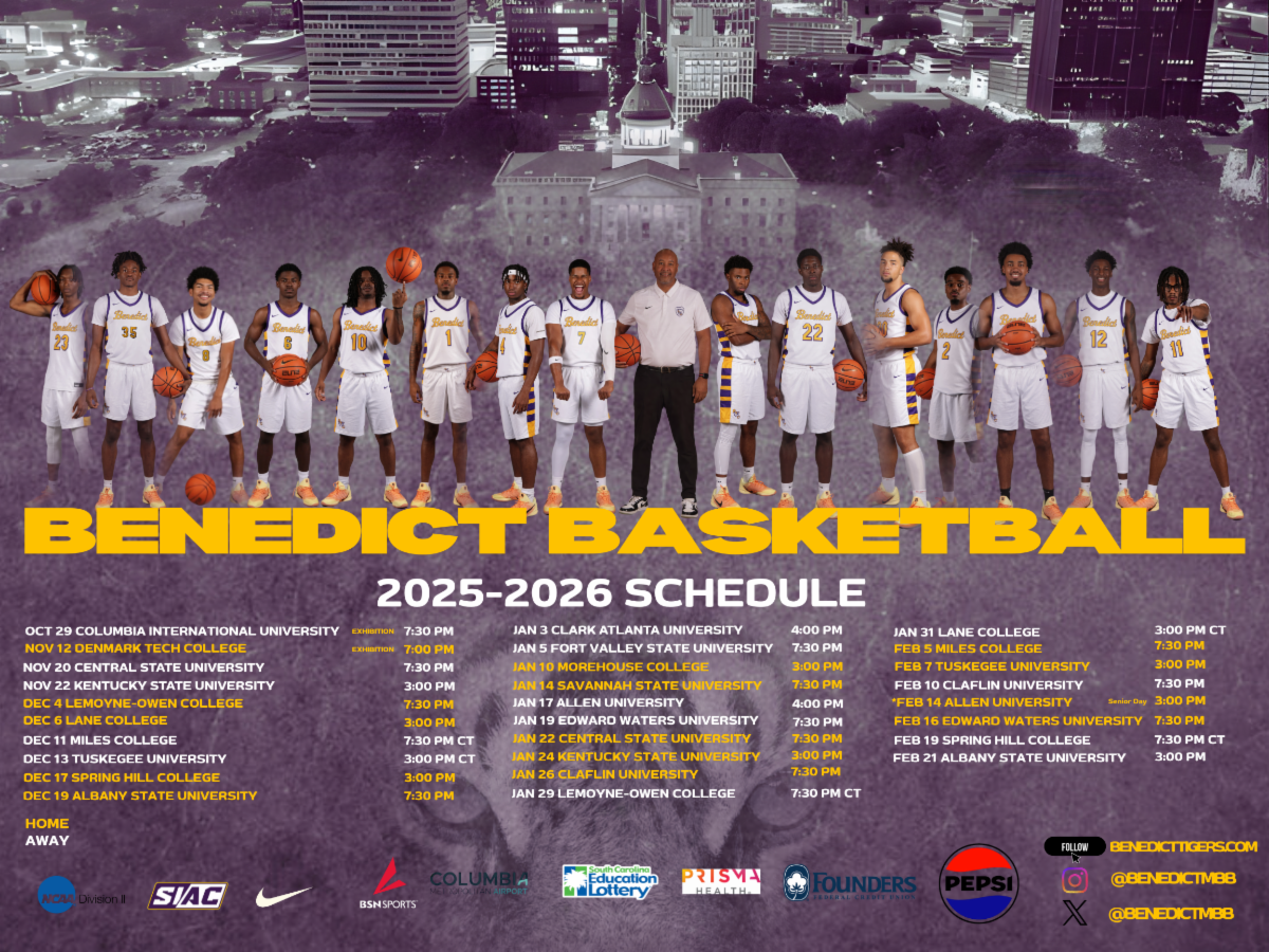 | | Benedict Baseball Earns Fourth Straight ABCA Team Academic Excellence Award | | Congratulations to the Inaugural class of Benedict College "Forty Under 40" | | The Men’s Basketball Team Worship at Bible Way Church of Atlas Road | | The Benedict College Men’s Basketball Team, led by Head Coach Dannton Jackson and Assistant Coach Josh Crutchfield, joined the congregation at Bible Way Church of Atlas Road for the 8AM worship service, home to Rev. Darrell Jackson, a proud Benedict alumnus. Rev. Jackson is a shining example of Benedict excellence, who continues to inspire people through his community leadership and ministry. We are proud to see our alumni making a difference and grateful for the opportunity to share in this moment of spiritual encouragement. | | The Tiger’s Football Team Joins the Fellowship at First Nazareth Baptist Church | | Coach Ron Dickerson and his coaches led the Benedict College Tiger Football Team across the street to First Nazareth Baptist Church for worship and fellowship. The nearby church is home to Pastor Blakely N. Scott, a distinguished former member of the Benedict College Family. Rev. Scott retired from Benedict College in May 1998, where he began as the Assistant Director of Auxiliary Services, later serving as College Minister, and then as an Instructor of Religion and Philosophy. | | Celebrating Innovation: Benedict College’s Statewide Investment Accelerator Graduates Cohort #4 | | |
