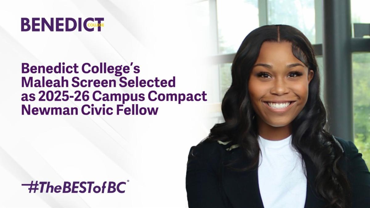 | | The BEST of BC Students Lead | | Benedict College welcomes the Class of 2029 | | Benedict College proudly announced a record-breaking enrollment for the Fall 2025 semester, welcoming nearly 670 new students, the College’s highest new student enrollment in seven years. | | Benedict College Senior Maleah Screen has been selected as a 2025-26 Campus Compact Newman Civic Fellow. Screen is a political science major with a minor in pre-law. The Newman Civic Fellowship is a year-long program that recognizes and supports community-committed students who have demonstrated an investment in finding solutions for some of society’s toughest challenges. The fellowship is named in honor of Frank Newman, one of Campus Compact’s founders. | | Benedict College Innovation Lab Students Visit Microsoft Atlanta Campus | | |