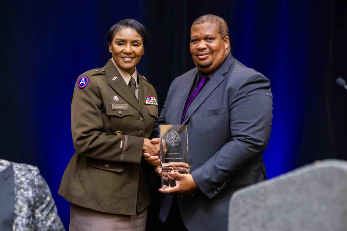 | | Community, Culture, and Celebration All Day Long | | The afternoon lit up Oak Street with the Annual BC Block Party – Trail Ride Edition from 1 p.m. to 6 p.m. The street pulsed with music, food, dancing, fellowship, and pure Tiger spirit. | | That evening, the College showed their gratitude to its BEST supporters, donors and friends at the 2025 President’s Reception. | | President Roslyn Clark Artis and Dr. Charlie W. Johnson, Chairman of the Benedict College Board of Trustees. | | Later in the evening the College honored distinguished alumna Brigadier General Peggy R. McManus, Class of 1993, during the Alumni Banquet at the DoubleTree Hotel. Her extraordinary military career and leadership continue to make Benedict College proud. | | Brigadier General McManus is presented with a token of the College’s appreciation by Rod Casey, BCNAA President. | | |