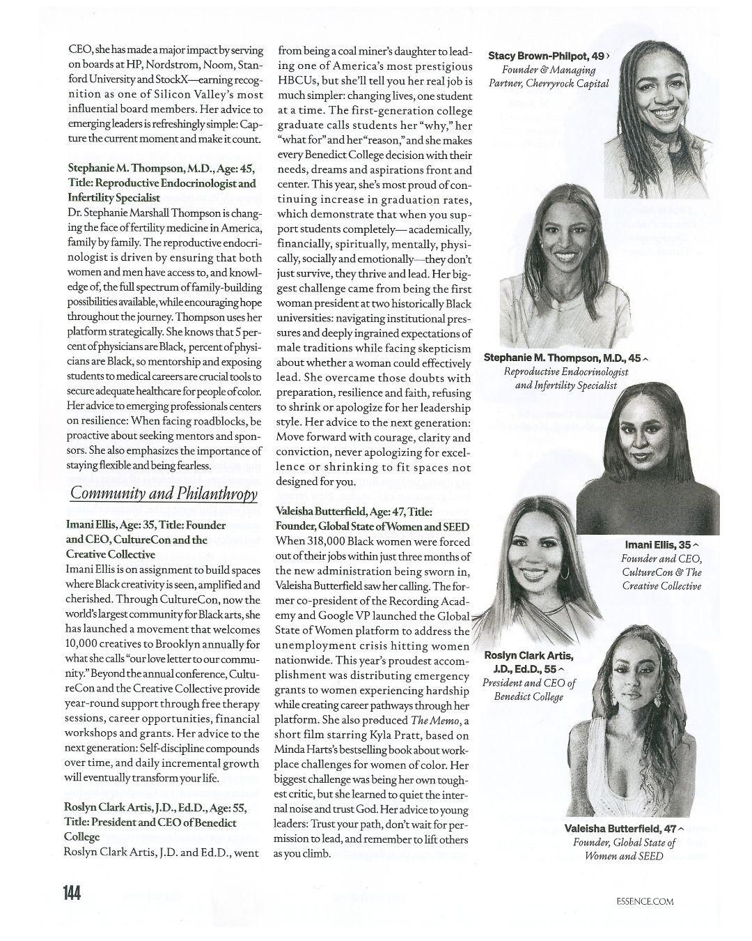She is featured in the Fall/Winter issue of Essence (page 144), where she offers this inspiring message to the next generation: “Move forward with courage, clarity, and conviction, never apologizing for excellence or shrinking to fit spaces not designed for you.”
