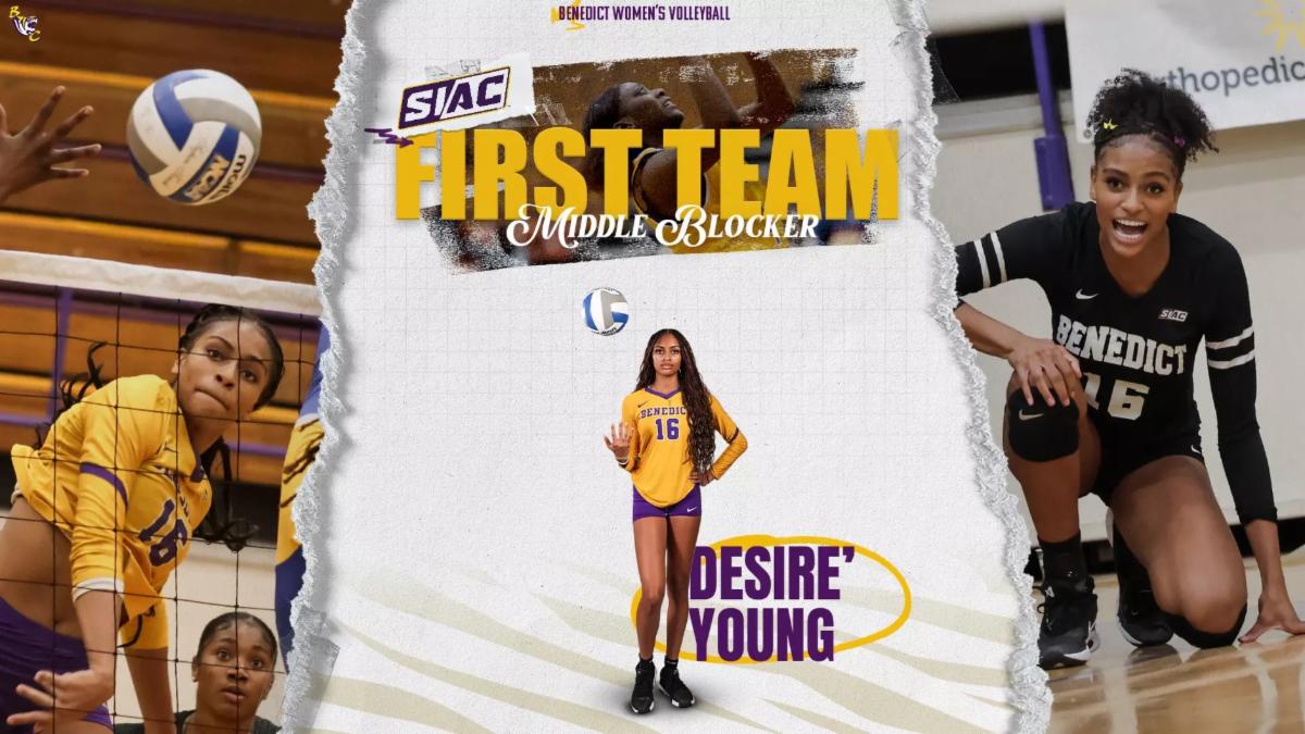 ATLANTA — The Southern Intercollegiate Athletic Conference announced its 2025 Women's Volleyball All-SIAC teams and individual honorees on Wednesday, as voted by the conference's head coaches. Benedict College junior middle hitter Desire' Young was named to the First Team.