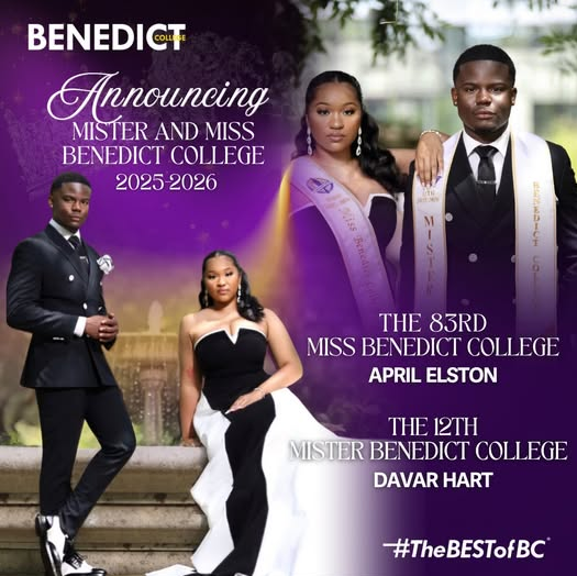 | | Introducing Mr. Davar Hart and Ms. April Elston, Mister and Miss Benedict College 2025-2026 | | |