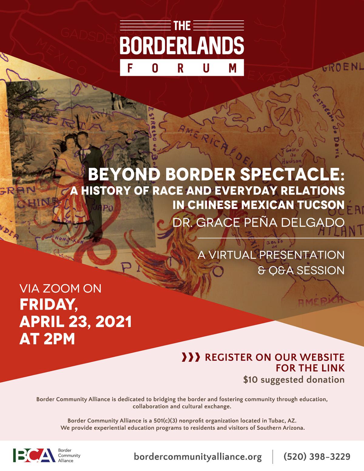 This talk is about the history of community ties and race in the making of southern Arizona borderlands. Dr. Grace Peña Delgado will explore why kin, kith, and interethnic relationships among Chinese and Mexican fronterizos (border people) were a critical mitigating force against anti-Asian hatred. Professor Delgado will also connect this episode of history to the current crisis at our southern border.