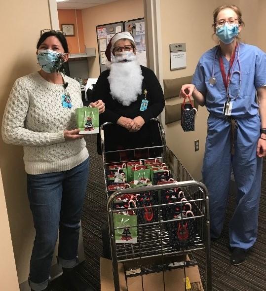 Santa’s helpers delivered gift bags including gift cards and scratch tickets from the pediatric providers to the amazing staff in General Pediatrics at High Street Health Clinic. The staff at HSHC not only cared for pediatric patients and their families during this pandemic, but established a food pantry, staffed the COVID19 testing site at 140 High Street and redesigned their model of care practically overnight to include telemedicine. Thanks for your astounding accomplishments this year!