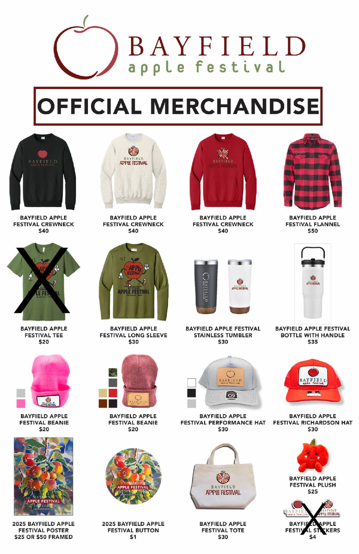 | | Gmail and Outlook users: At the bottom of this page click "view entire message" to view this message in a new window in its entirety. | | Bayfield Apple Festival Merch Still Available | | Last Taste of Bayfield's Apple Season | | |