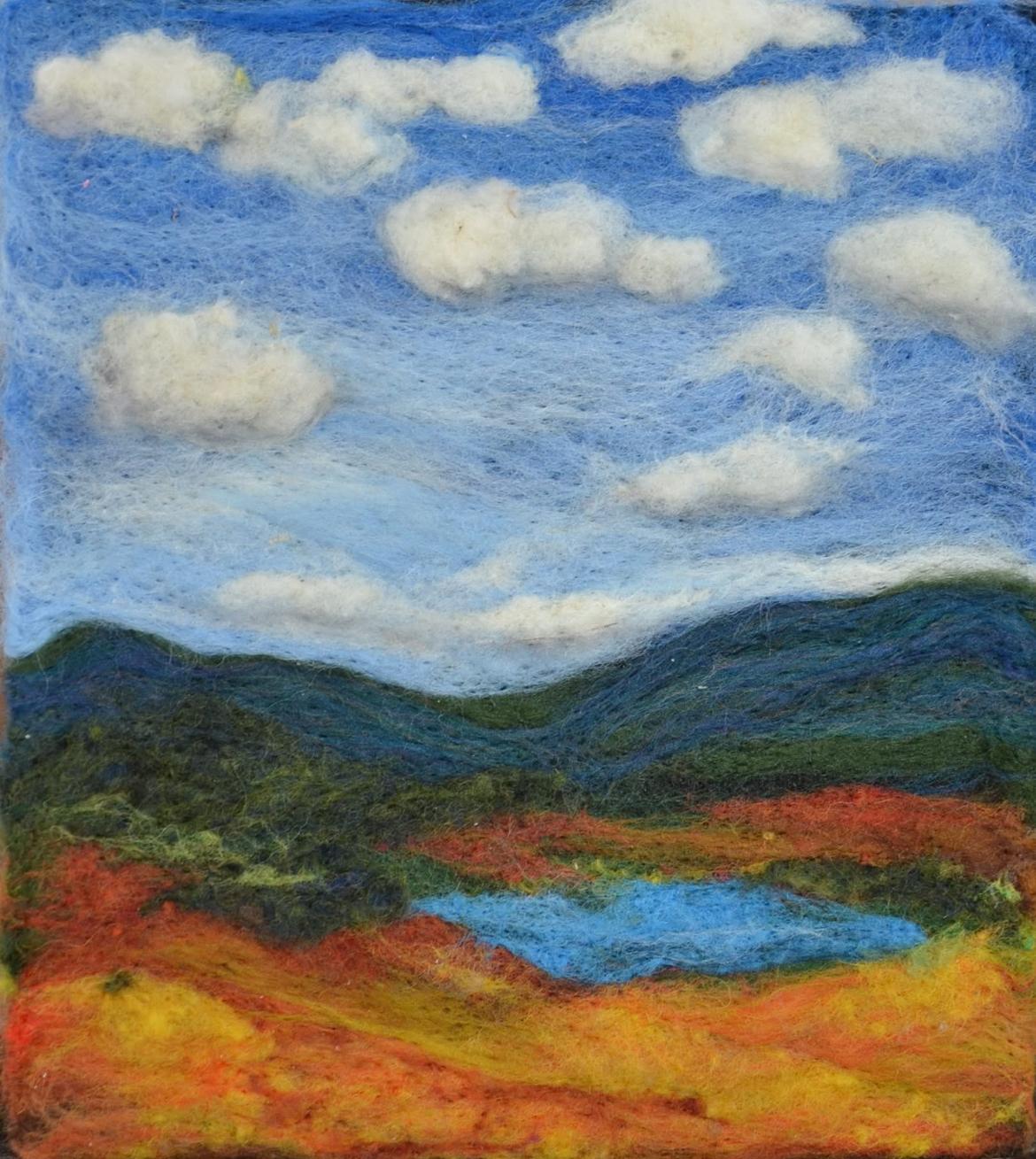 With needle felting you learn to "paint" with wool fleece, and what you can create is limitless! We will cover the basics, blending colors, tips and techniques, and will create several small projects, including a landscape.