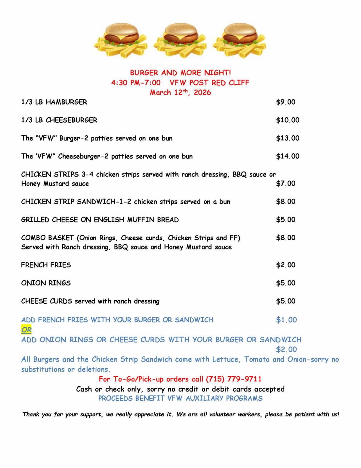 Proceeds raised help support VFW Auxiliary programs. Thanks for your support!