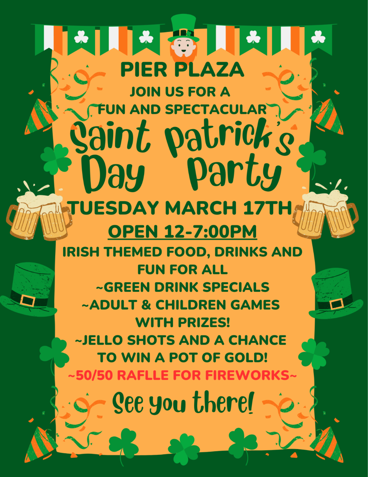 We are Open Tuesday, March 17th, Noon - 7:00 p.m. for our Annual St. Patrick's Day Party! Follow us on Facebook for Details! Serving lots of great food specials, including Boiled Dinner, Green Beer, and Much More!