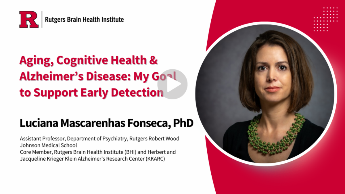| Welcome Dr. Luciana Mascarenhas Fonseca | | Dr. Luciana Mascarenhas Fonseca joined the Herbert and Jacqueline Krieger Klein Alzheimer’s Research Center in the BHI as a core faculty member in August. Dr. Fonseca is a tenure track assistant professor of Psychiatry in RWJMS and a core member of IFH. Her research focuses on understanding both pathological and successful aging, with a special interest in early cognitive biomarkers to predict dementia before symptoms appear. She leads projects on cognition in individuals with Down Syndrome, indigenous communities, and people living with diabetes, using innovative real-time assessments to improve early detection and prevention. Dr. Fonseca is excited to collaborate with colleagues across disciplines here at Rutgers and beyond to advance brain health across the lifespan. |
