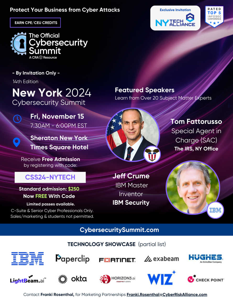 Join us for the 14th Annual Official New York Cybersecurity Summit, rated Top 5 InfoSec Conference Worldwide, held on Friday, November 15, 2024 at the Sheraton New York Times Square Hotel.