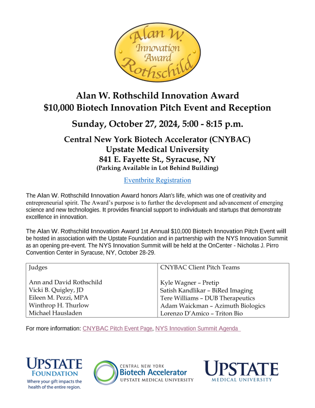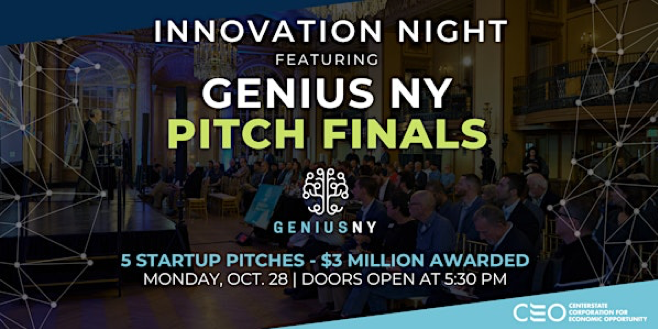 Join the GENIUS NY accelerator as the five finalist teams unveil their revolutionary technologies and innovative solutions live on stage. With $3 million in prizes on the line, including a $1 million grand prize and four $500,000 awards, the stakes couldn't be higher. Hear each team share their journey, the problems they're tackling, their scaling strategies, and why they’ve chosen Central New York as their launchpad. | |