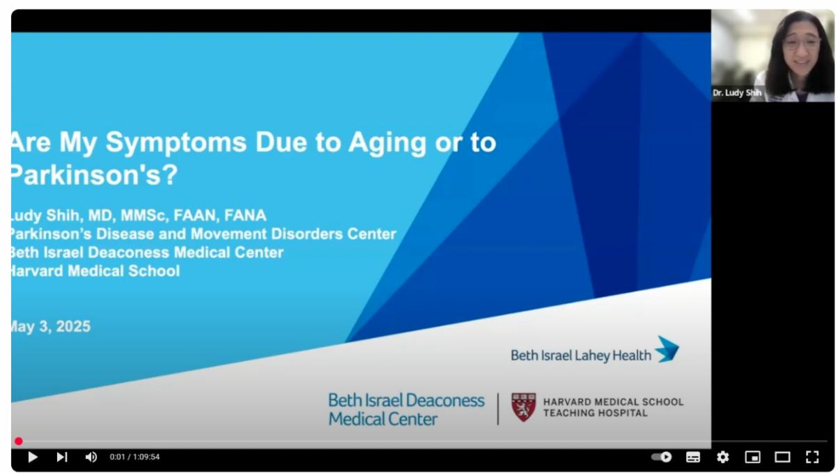 Thank you to Dr. Ludy Shih for speaking at our most recent "Ask the Experts" webinar for people with Parkinson's and care partners. The recording of her talk titled "Are My Symptoms Due to Aging or to Parkinson’s" is now available on YouTube.