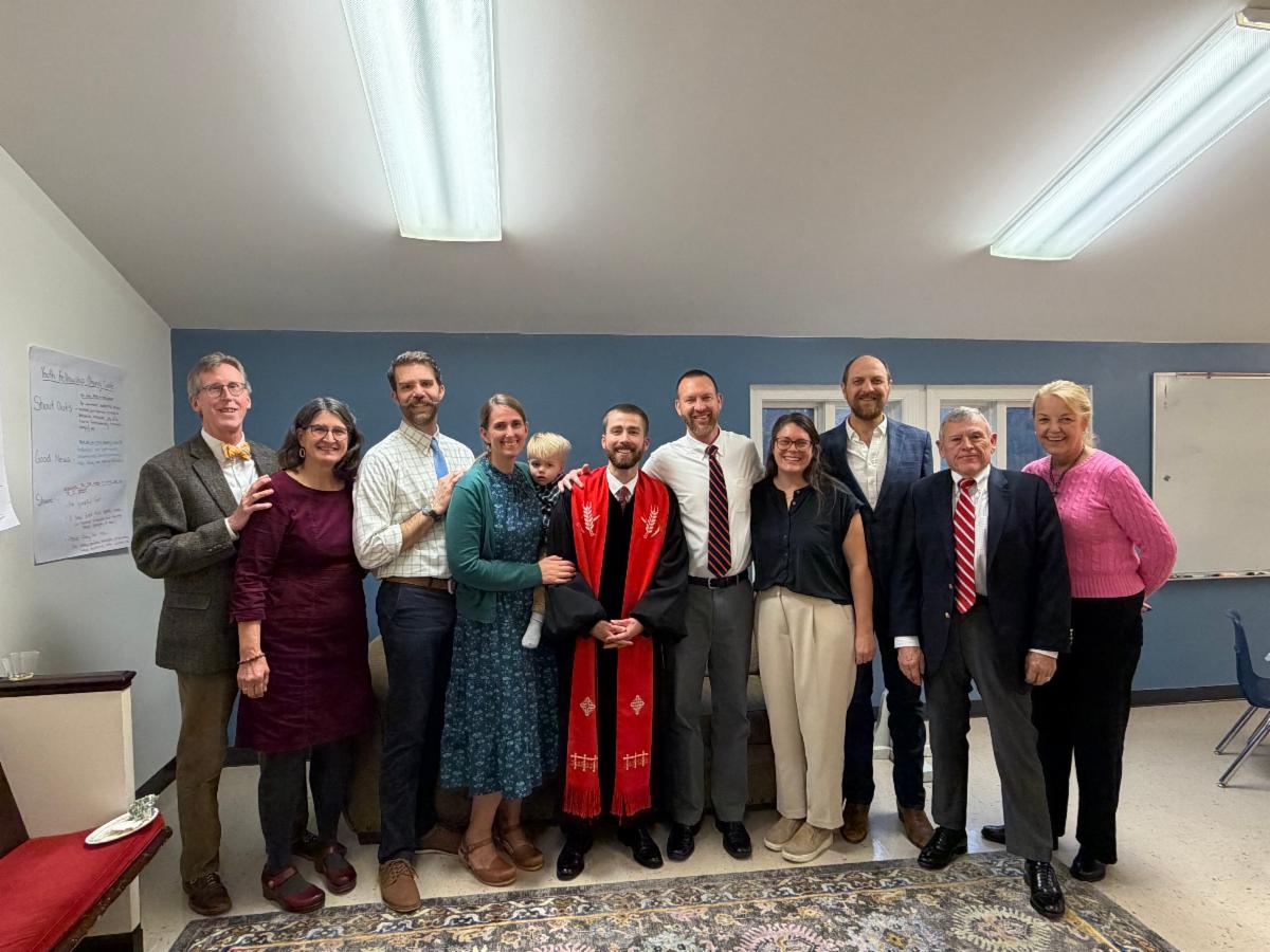 An ordination celebration! | We celebrate with Jane and Craig Bannerman over the ordination of their son, Levi Bannerman, to the ministry of word and sacrament in the PCUSA. His ordination service was held at Olivet Presbyterian Church in Charlottesville, VA on January 10, 2026. Pictured above are nine former BMPC youth advisors with Levi at this joyous occasion. |