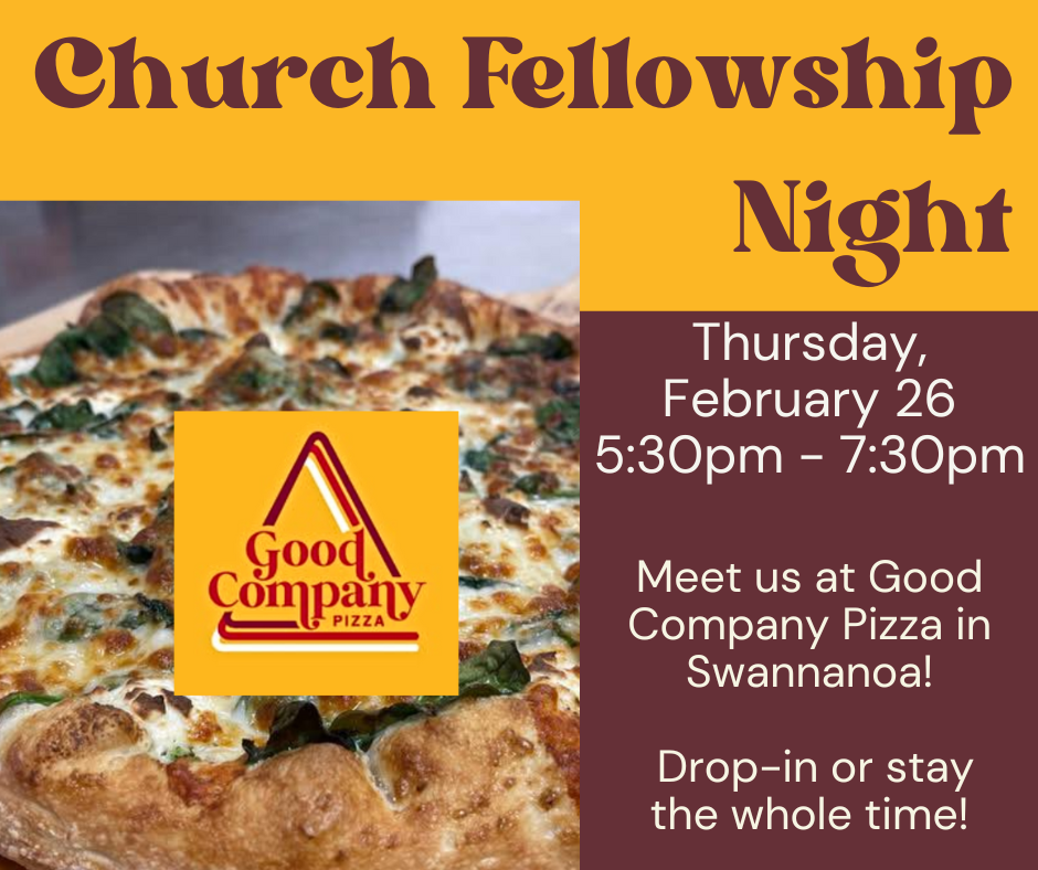 Let’s get together and figure out how we might create a dynamic group of late middle-agers. We can get together just to socialize, or maybe we want to have a book study, or maybe we want to do service projects or…who knows? Let’s start to figure it out on Sunday, February 15 at 6:00 for a pizza dinner at the church house.