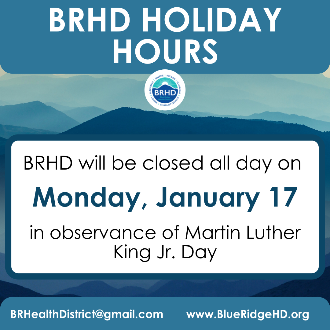 In observance of Martin Luther King Jr. Day, our offices, including our COVID-19 hotline, will be closed on Monday, January 17, 2022. Normal hours of operation will resume Tuesday, January 18 at 8:00 AM.