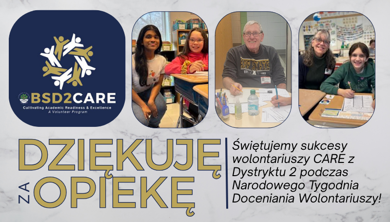 Okręg 2 zabrania dyskryminacji ze względu na płeć w jakimkolwiek programie edukacyjnym lub aktywności, którą prowadzi. Osoby mogą zgłaszać obawy lub pytania do Koordynatora ds. Tytułu IX. Zawiadomienie o niedyskryminacji znajduje się pod adresem https://www.bsd2.org/students-families/non-discrimination-title-ix-and-anti-harassment