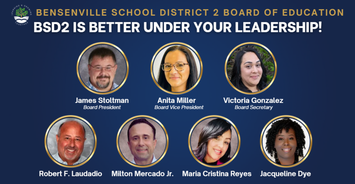 As Board Secretary, Mrs. Gonzalez brings strong community leadership and strengthens school–family ties through her work as a Project CARE mentor, her volunteer efforts in band and jazz programs. Her prior service with the Bensenville–Wood Dale Rotary, along with her current role as Vice President of the Bensenville Community Foundation, deepen her connection to the community.