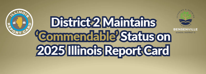 The Illinois State Board of Education (ISBE) has released the 2025 Illinois Report Cards, and Bensenville School District 2 is proud to share that all three of our schools have maintained a Commendable Summative Designation this year. Maintaining our status represents continued progress and a reflection of the hard work of our students, staff, and families.