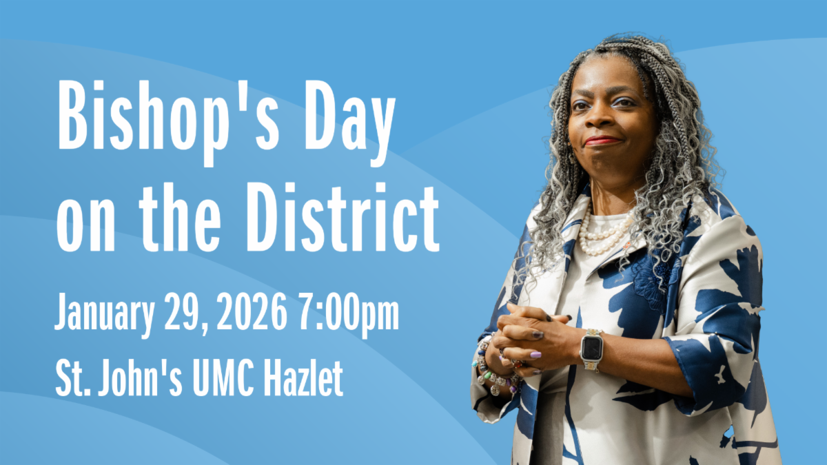 District, and clergy and laity are warmly invited to gather for worship on Thursday, January 29, at 7:00 p.m. at St. John’s UMC in Hazlet. Worship will be followed by a brief question-and-answer time with the Bishop. All are welcome. Please mark your calendars and plan to join us.