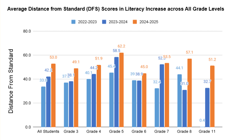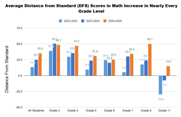 One of the ways we track progress is through a measure called Distance from Standard, which shows how close a student’s score is to meeting the state’s proficiency benchmark. This helps us understand each student’s progress, see where extra support might help, and direct resources where they can make the biggest difference.
