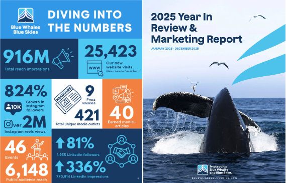 The 2025 Year In Review and Marketing Report is now out, documenting how the program was represented across earned media, press releases, partner reporting, ambassador communications, and industry channels. It provides a consolidated view of how collaborative action has extended the reach and recognition of vessel speed reduction as an effective approach to protecting whales and clean air.
