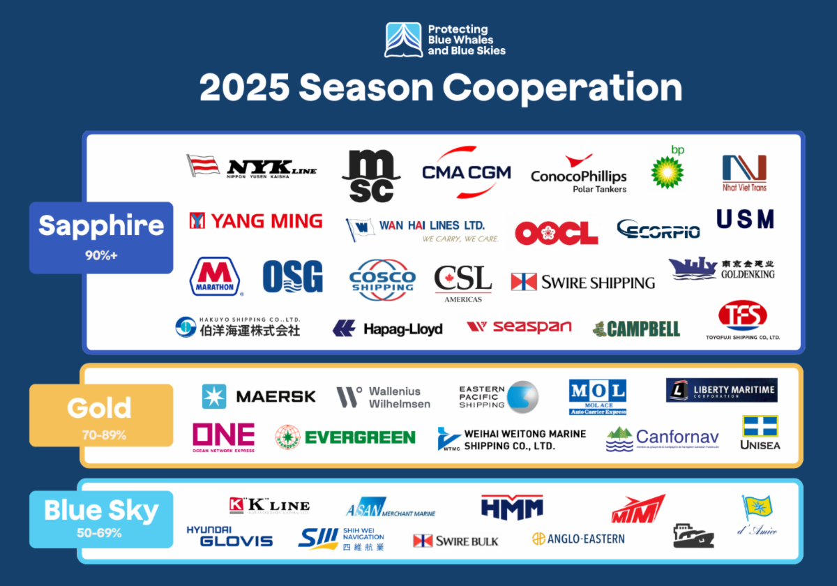 Thank you to all participating shipping lines and ambassadors for working together for their continued leadership and commitment to whale-safer shipping.