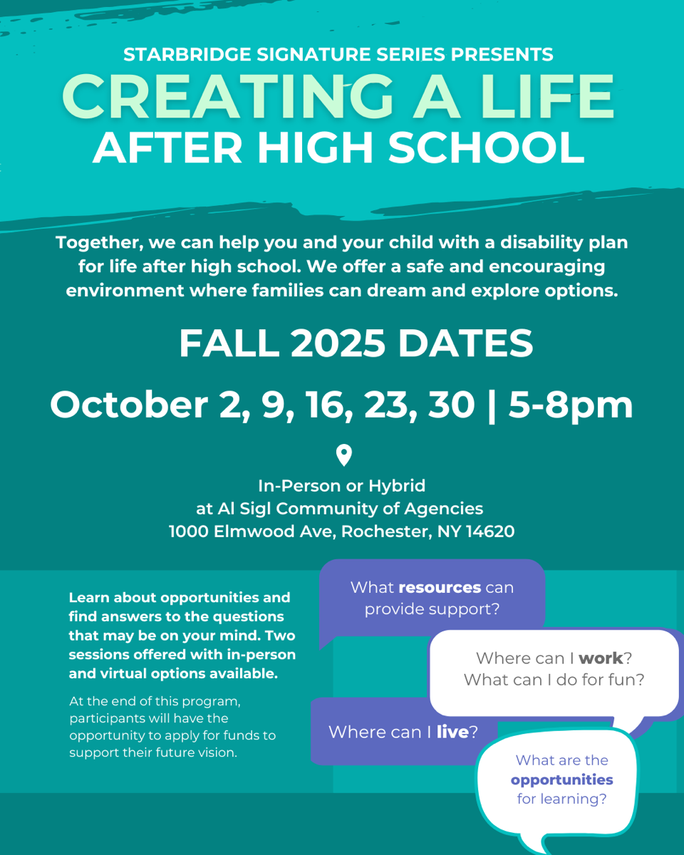 For additional resources, please call the Starbridge Intake Line at (585) 224-7359 or fill out our Contact Us form and our Information Specialist will be in touch with you.