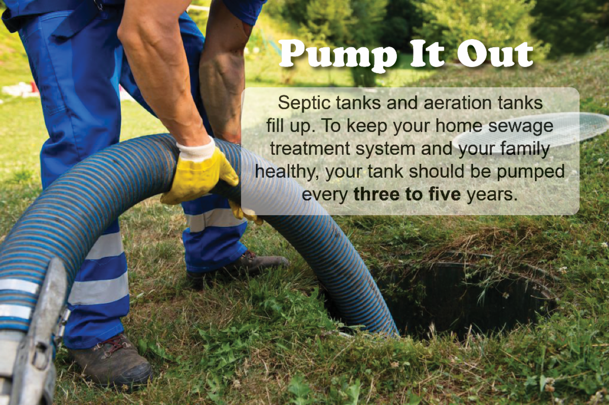 Septic Smart. If you have a septic tank, keep it maintained and pump it out every 3 years. Leaky septic tanks can discharge human sewage, so it's very important to keep them well maintained and improves the longevity of your system.