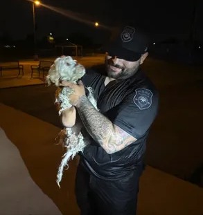 People held flashlights on the dog while the officer removed his equipment and shoes to prepare to jump into the water. A woman could be heard crying on the video, until finally the officer could be heard say "I got it! I got it!" before jumping into the water and retrieving the dog and returning it to its "thankful" owner.