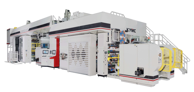 Flexo CI with downstream coating units.