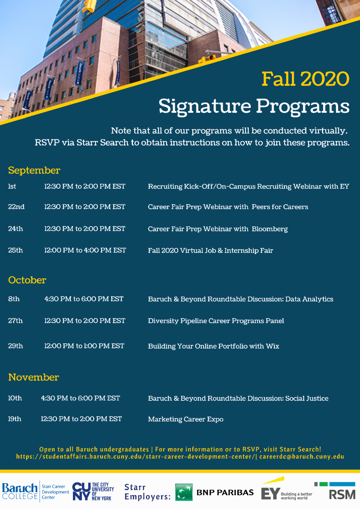 Welcome back to Baruch College! Check out some of our exciting line-up of programs and services at the Starr Career Development Center this fall!