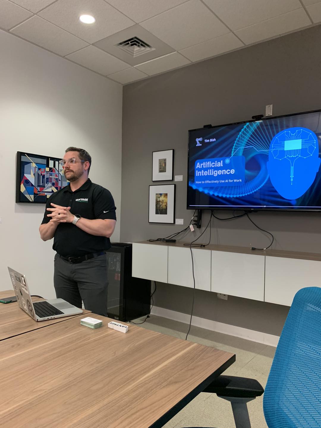 Tim Bish with Vantage Plastics hosted our July Lunch & Learn on how to effectively use AI for work.