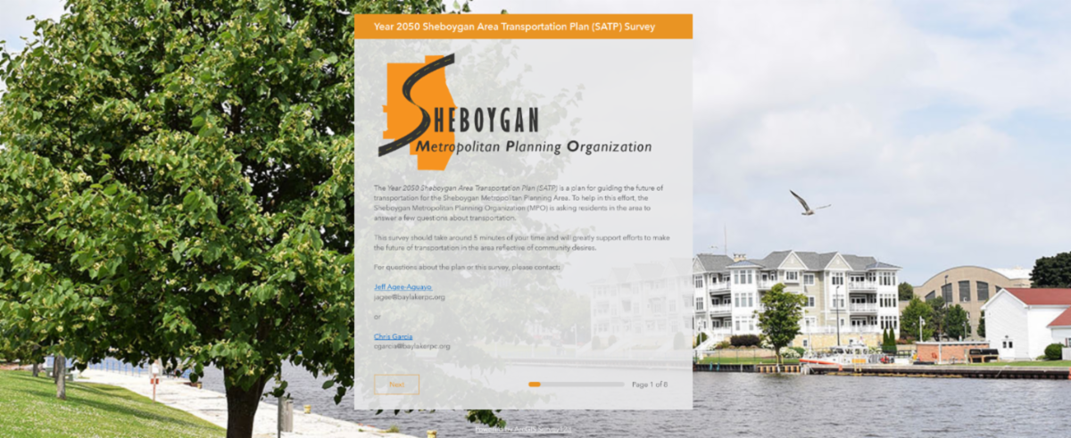 The Sheboygan Metropolitan Planning Organization (MPO) is in the process of developing the Year 2050 Sheboygan Area Transportation Plan (SATP), a plan for guiding the future of transportation for the Sheboygan Metropolitan Planning Area. To help in this effort, the Sheboygan MPO is asking residents in the area to answer a few questions about transportation. The link to the survey can be found here: https://arcg.is/1XK0Kv0.