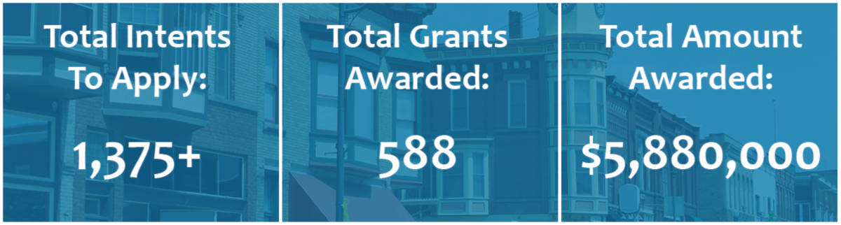 Since the program began, we have received over 1,375 Intents to Apply and funded 588 applications!