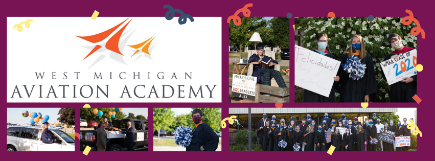 West Michigan Aviation Academy, Arbor Preparatory, Star International Academy, and Universal Learning Academy held graduation ceremonies for their high schoolers in their parking lots. A train of cars paraded through, filled with graduates and their families to wave a celebratory goodbye to their teachers and faculty members.