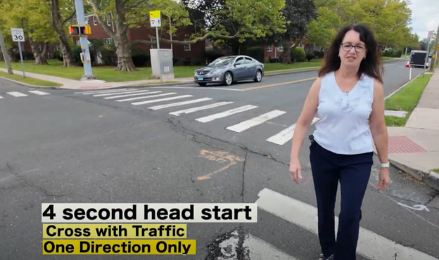 Some intersections, like this one at the Boulevard and Quaker Lane South, now use a Concurrent Pedestrian Phase with a Leading Pedestrian Interval, giving you a 4-second head start before cars get the green light. This feature makes pedestrians more visible to drivers and has been proven to reduce crashes by up to 13%.