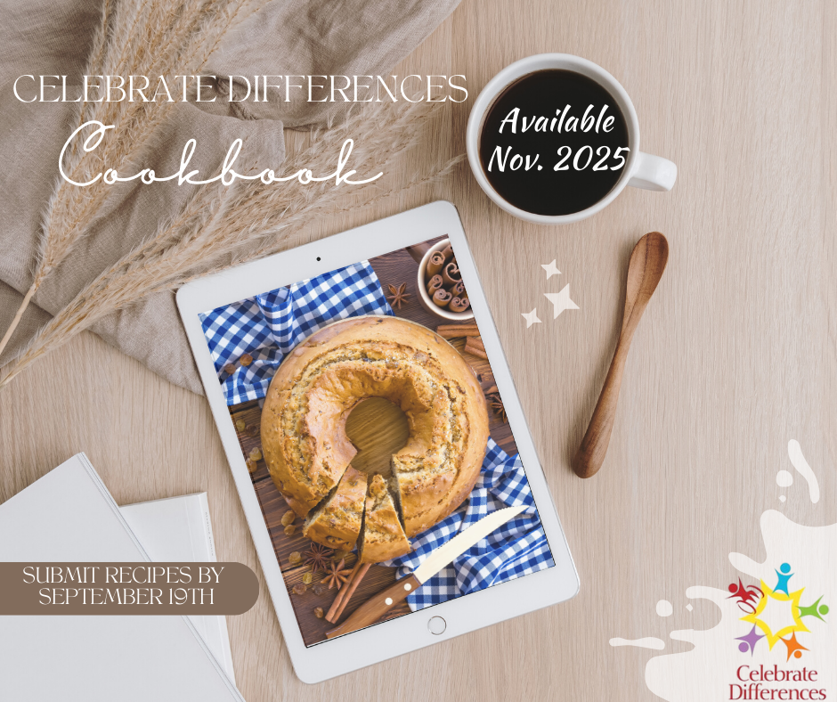 Celebrate Differences is always cooking up something new! We’re excited to introduce the Celebrate Differences Cookbook—a special collection of recipes shared by family and friends who inspire us. The idea was sparked by Janey Chavez, who cherished the cookbooks her dad made for their family. For her, it wasn’t just about the recipes—it was about the memories, the handwritten notes, and the joy of cooking together. This cookbook continues that tradition, bringing together the recipes and love from our community. Proceeds from each sale will directly support our M.O.R.E. Program (Meaningful Opportunities for Rewarding Experiences)—helping individuals with intellectual disabilities build daily living skills, social connections, communication, recreation, and volunteer opportunities.