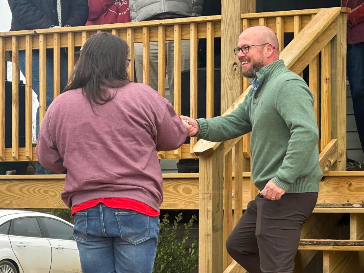 Graves County Judge/Executive Jesse Perry presents keys to a new home to a survivor of the December 2021 tornadoes. | |
