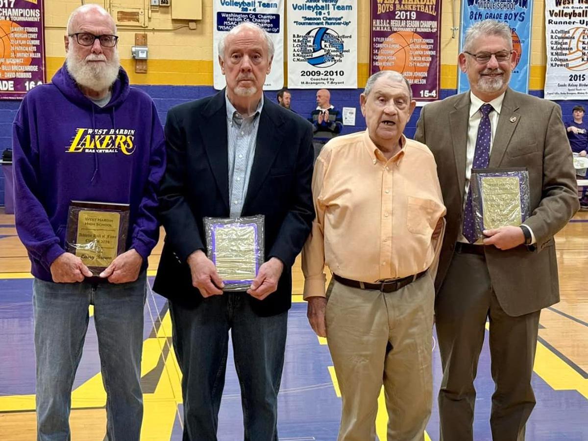 Hardin County Judge/Executive Keith Taul, right, helped celebrate the inaugural West Hardin High School Athletic Hall of Fame inductees Larry Brown, Mike Richardson and Bobby Williams at a recent basketball game. | |