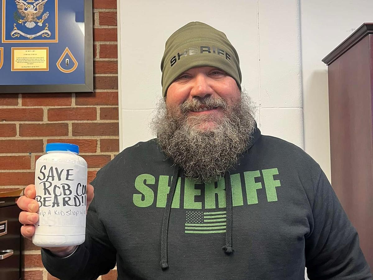 Fleming County Chief Deputy Rob Conn and other personnel have been collecting donations for the county's Shop with a Cop program. Officers are having a contest to see who can raise the most donations for the program with the person collecting the most money in their name having to shave their beard. | |