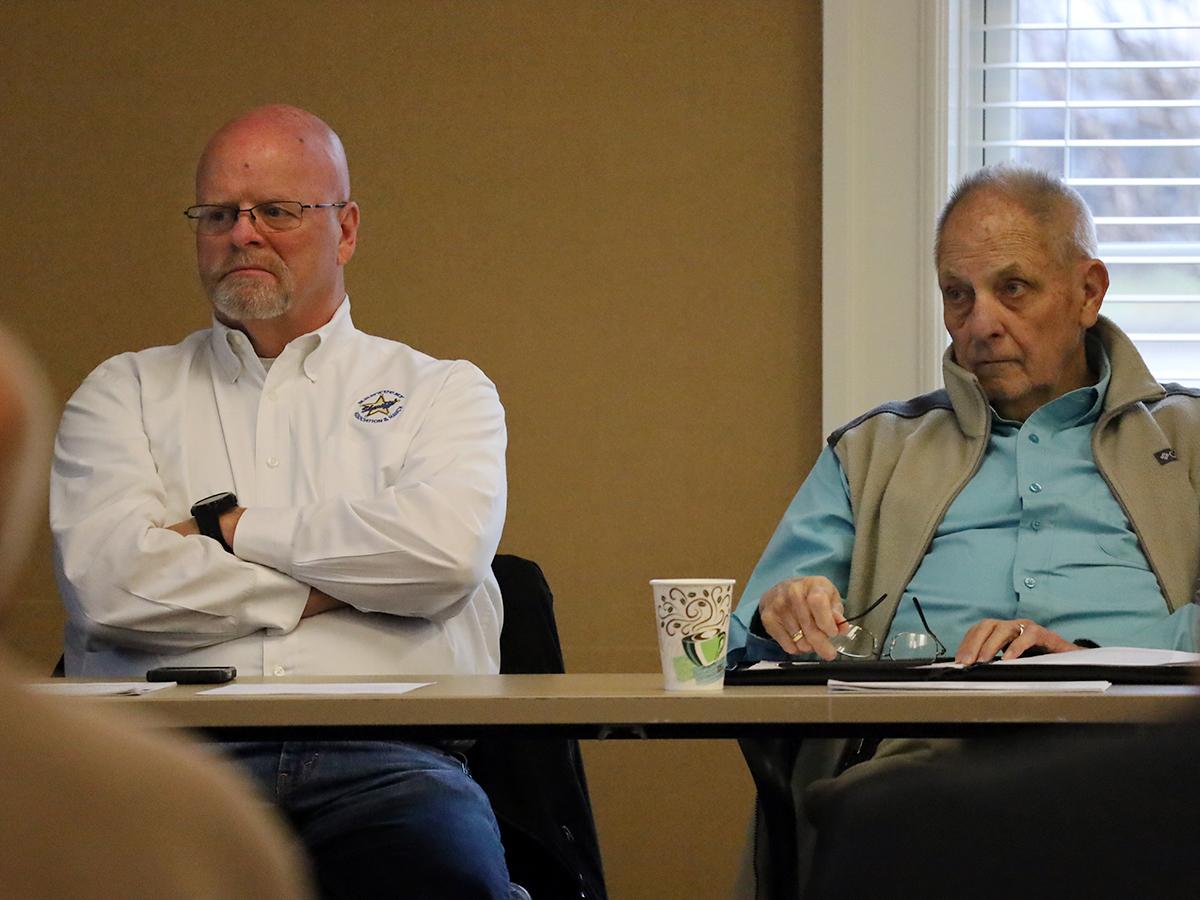 Campbell County Sheriff Mike Jansen, left, and Jefferson County Sheriff John Aubrey listen to Jerry Wagner's discussion at the meeting. | |