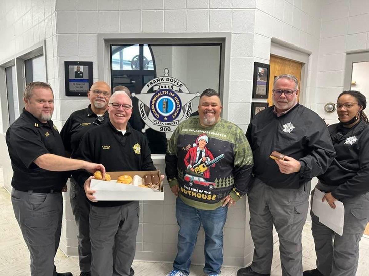 Clark County Jailer Frank Doyle and his staff were treated to fresh doughnuts from a local business. | |